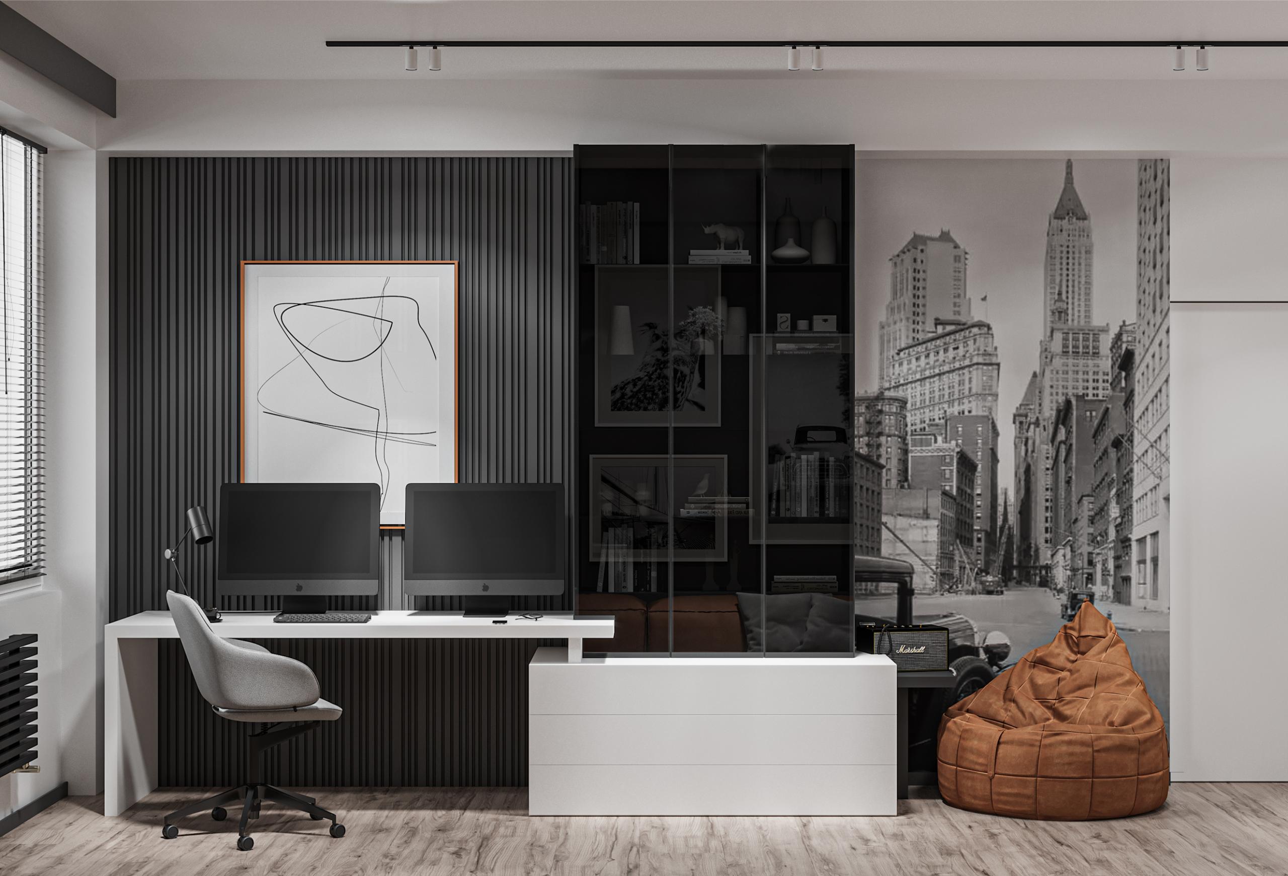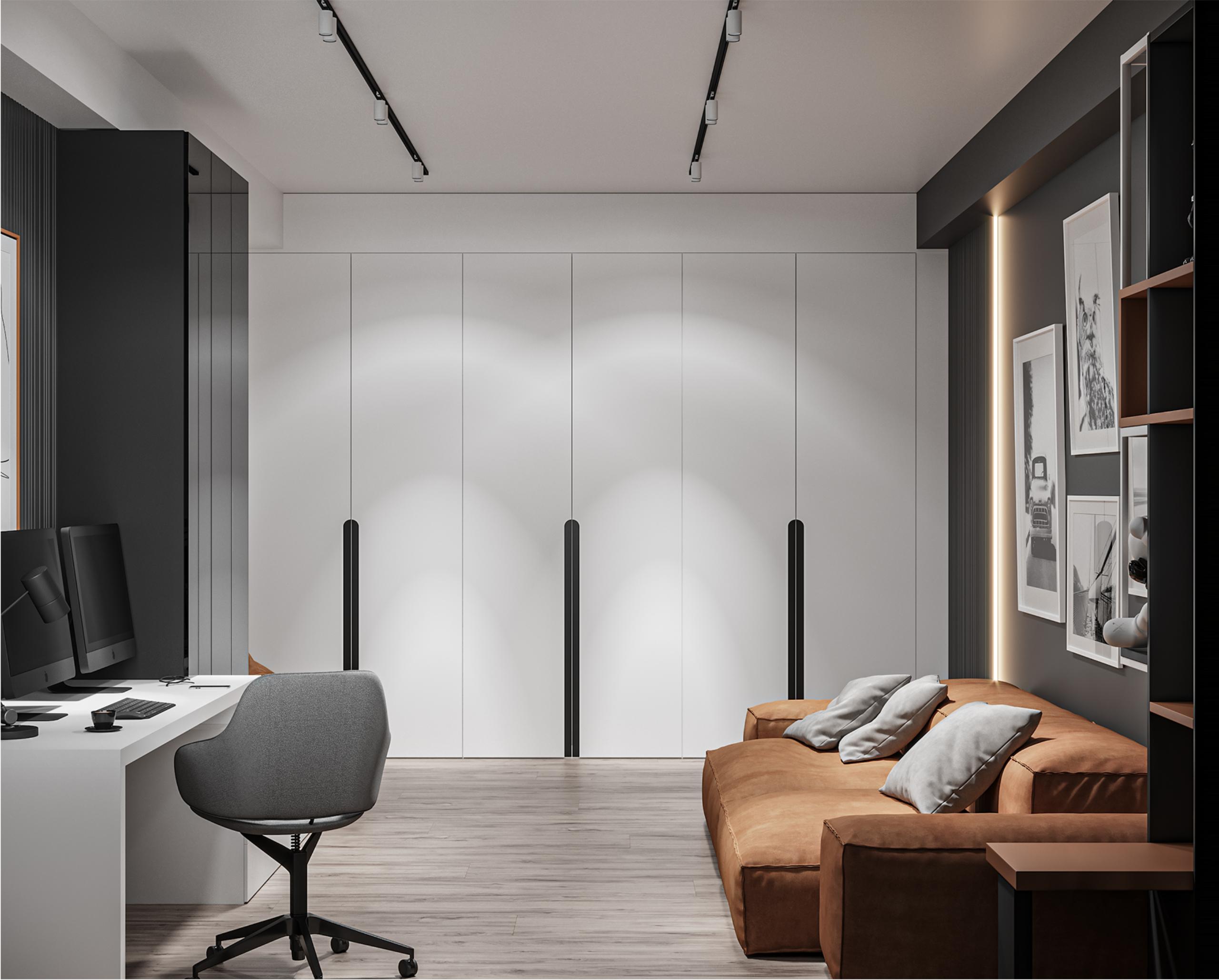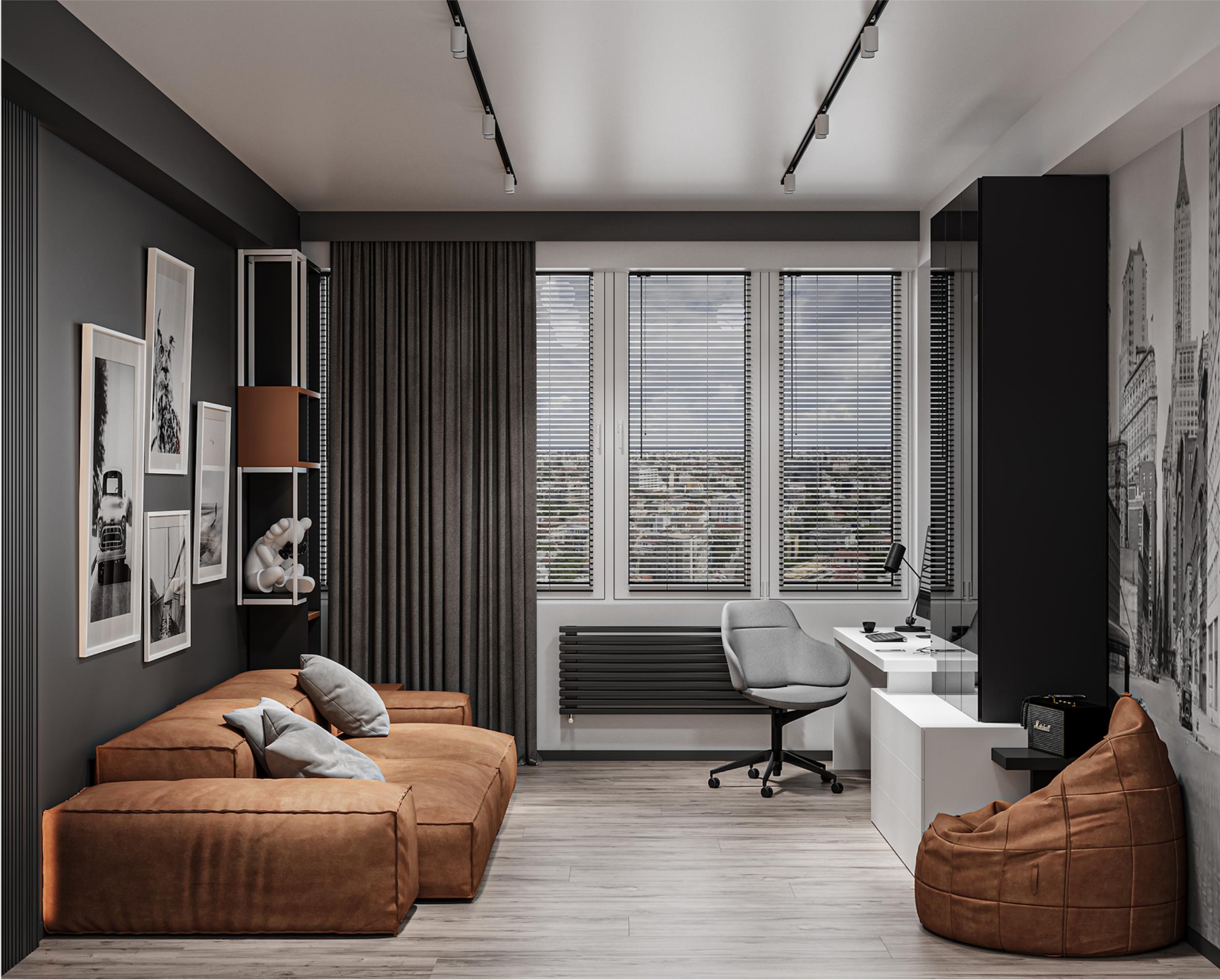 Am creat un spațiu care să reflecte energia și stilul unui tânăr dinamic, combinând estetica modernă cu funcționalitatea de zi cu zi.